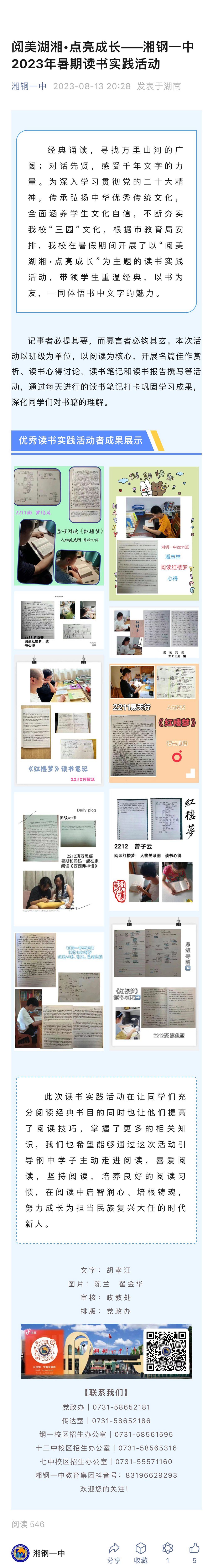 阅美湖湘•点亮成长——湘钢一中2023年暑期读书实践活动