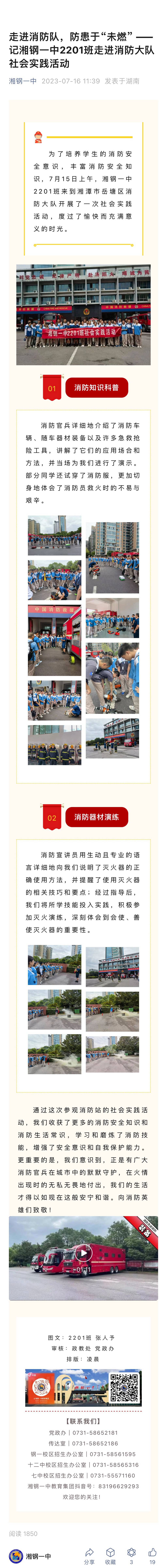 走进消防队,防患于“未燃” ——记湘钢一中2201班走进消防大队社会实践活动
