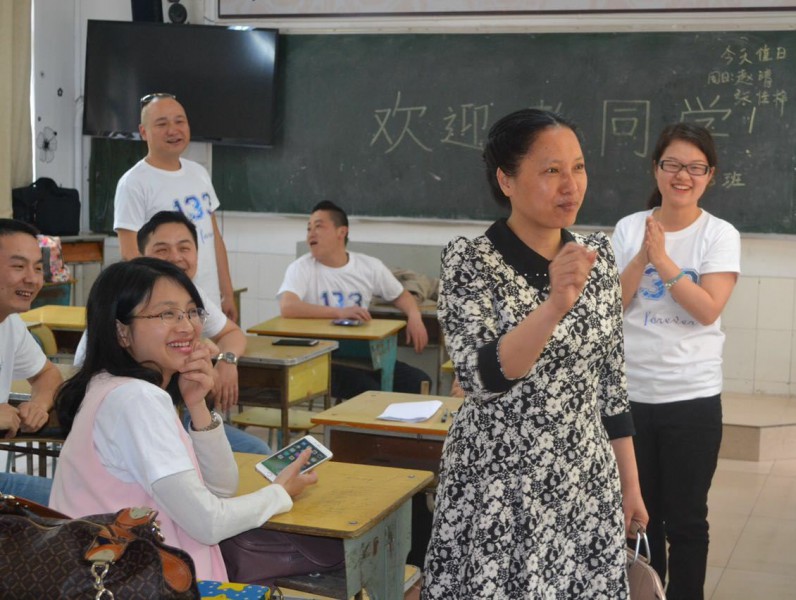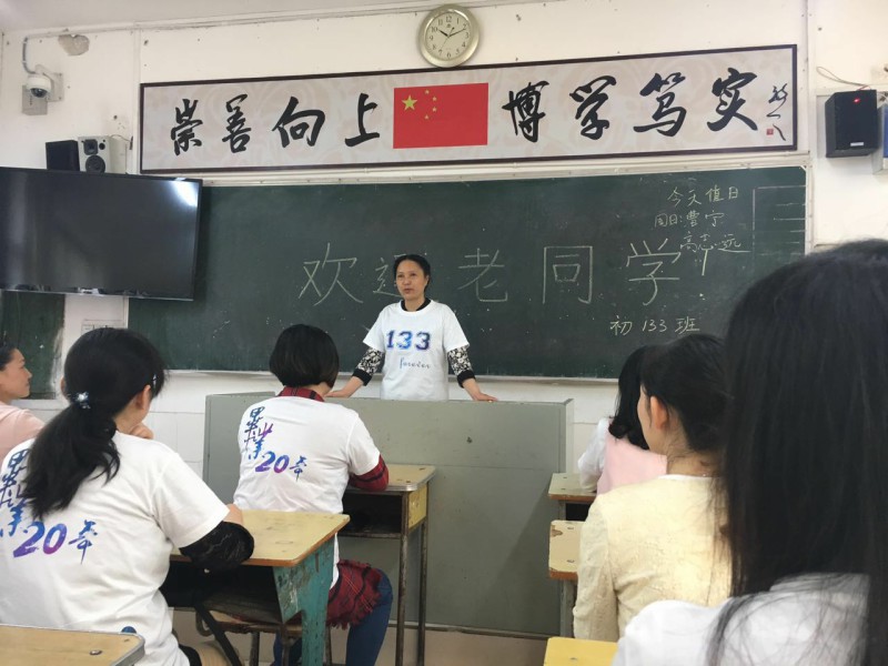 上午九点,校友们陆陆续续回到学校,循着记忆中的点滴,回到曾经的教室,看到曾经熟悉的黑板、课桌,时光的阀门一下开启,大家仿佛又回到了那个青葱的岁月,同学之间每一个亲切的问候和拥抱,都让大家感动不已,时间仿佛出现了重叠,20年的时光距离仿佛消失了,大家好像昨天还在一起上课、玩耍。