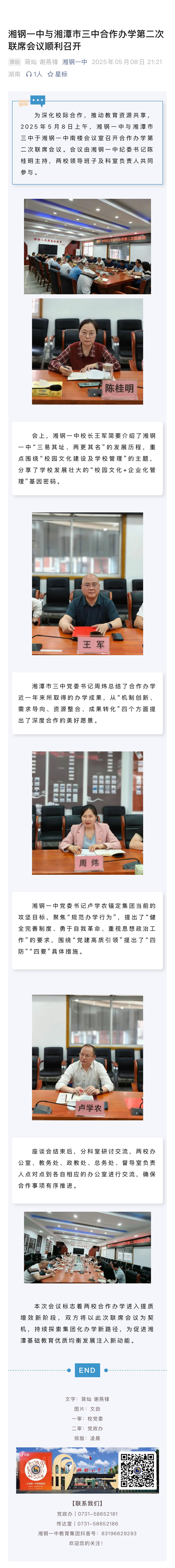 湘钢一中与湘潭市三中合作办学第二次联席会议顺利召开