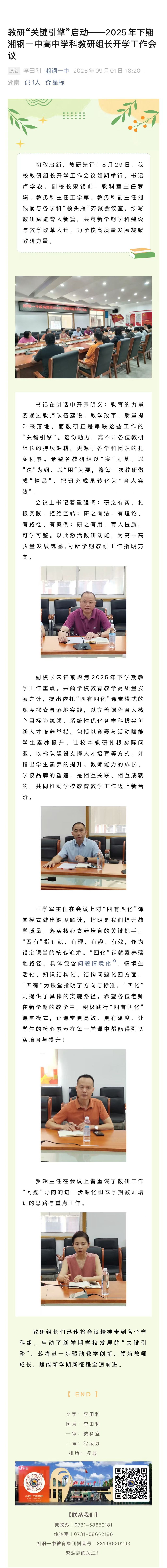 教研“关键引擎”启动——2025年下期湘钢一中高中学科教研组长开学工作会议
