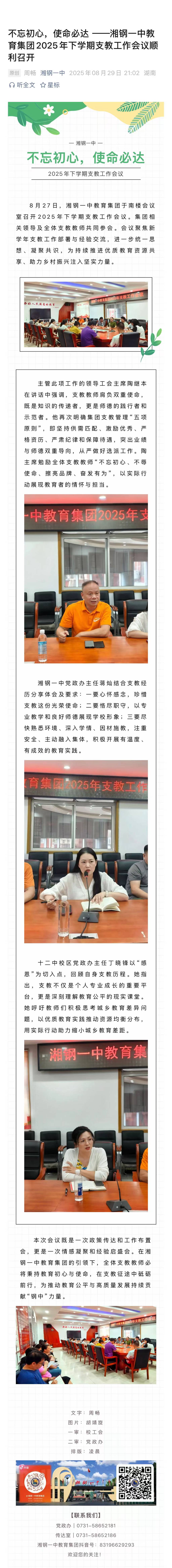 不忘初心,使命必达 ——湘钢一中教育集团2025年下学期支教工作会议顺利召开