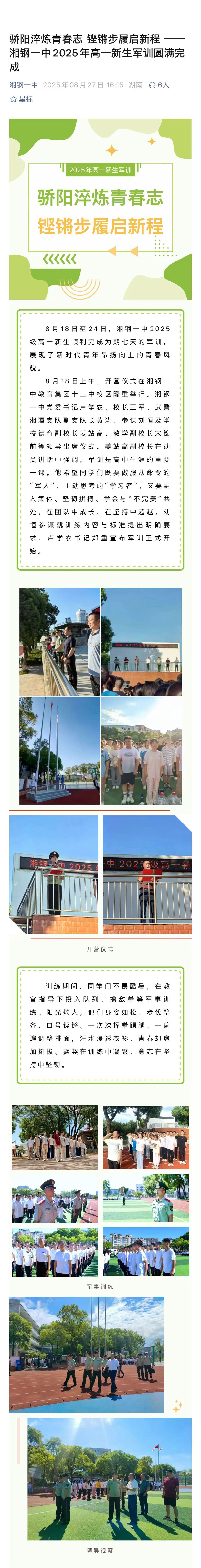 骄阳淬炼青春志 铿锵步履启新程 ——湘钢一中2025年高一新生军训圆满完成