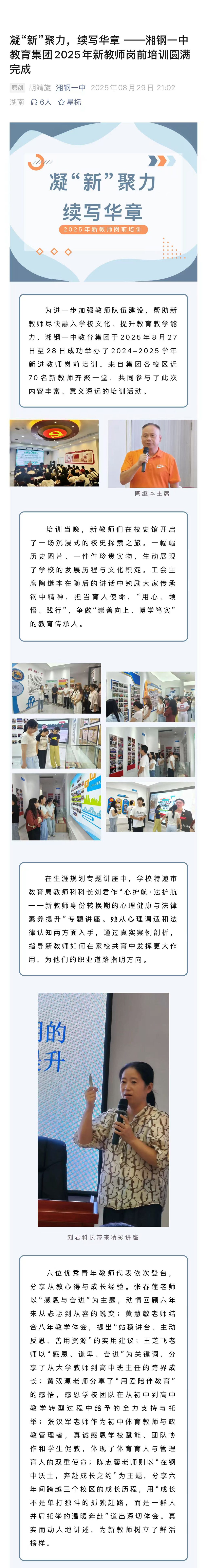 凝“新”聚力,续写华章 ——湘钢一中教育集团2025年新教师岗前培训圆满完成