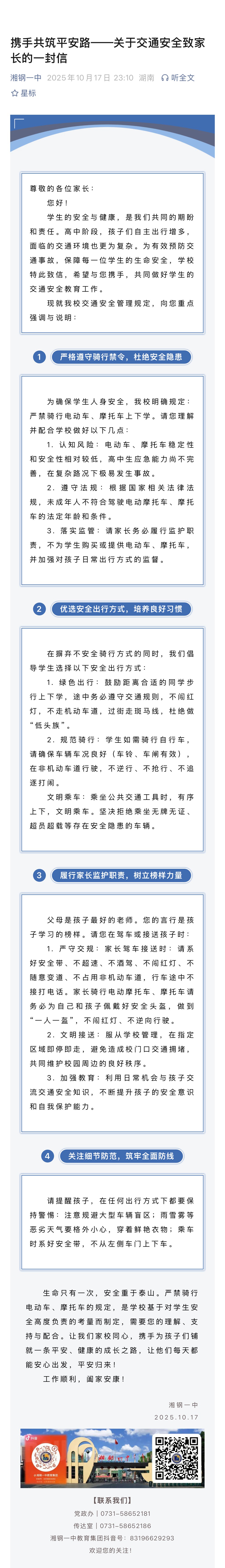 携手共筑平安路——关于交通安全致家长的一封信
