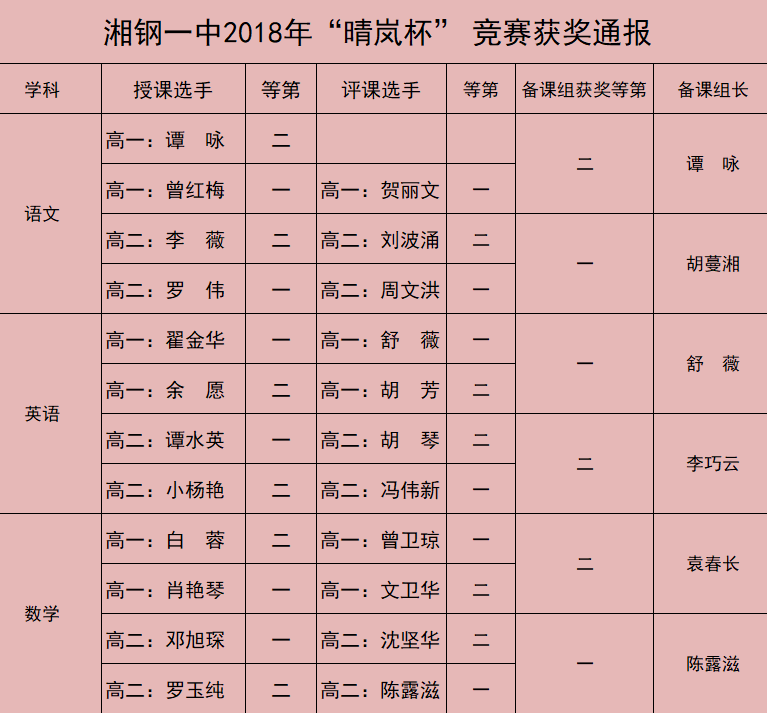 附:湘钢一中2018年“晴岚杯” 竞赛获奖通报: